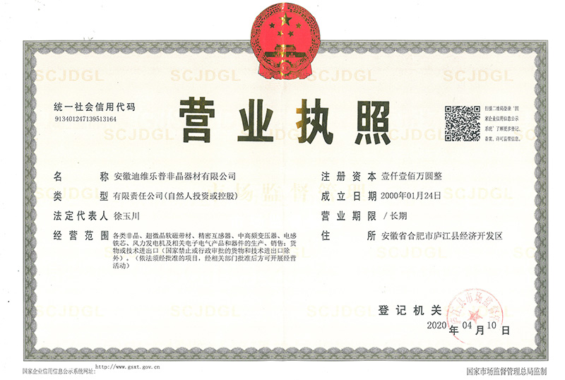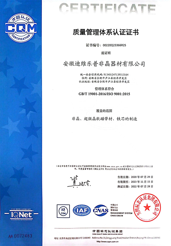 為響應(yīng)國(guó)家標(biāo)準(zhǔn)化發(fā)展綱要,推動(dòng)高質(zhì)量發(fā)展,建設(shè)社會(huì)主義現(xiàn)代化國(guó)家。 安徽迪維樂普非晶器材有限公司、非晶合金電力互感器材料研究中心;為促進(jìn)標(biāo) 準(zhǔn)化發(fā)展、提升標(biāo)準(zhǔn)化水平;實(shí)現(xiàn)企業(yè)有序發(fā)展、有規(guī)可循;產(chǎn)品質(zhì)量有據(jù)可依、 方便客戶甄別選用,特制定本企業(yè)質(zhì)量標(biāo)準(zhǔn)。